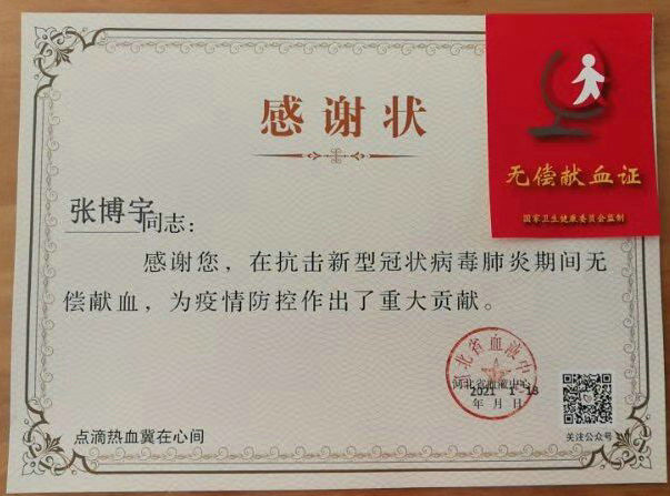 疫情当下,河北一兽药业有限公司干部、职工居家防疫,张永祥、李元迎两名党员及职工曹永波通过石家庄新闻广播了解到受疫情影响,石家庄血小板告急。他们立即电话联系河北省血液中心,预约献血时间,公司副总经理张永祥同志还动员放寒假在家的儿子张博宇捐献爱心、救治生命。截止1月20日下午,这三名党员、职工及一名家属捐献了血液。疫情无情,人间有爱,众志成城,万众一心,一兽药业的党员、职工用行动绘就了一幅感人的画面,用行动践行了担当与誓言,充分发挥了党员模范带头作用,为石家庄战胜疫情注入坚强的决心和勇气,充分体现了一兽药业的国企担当。