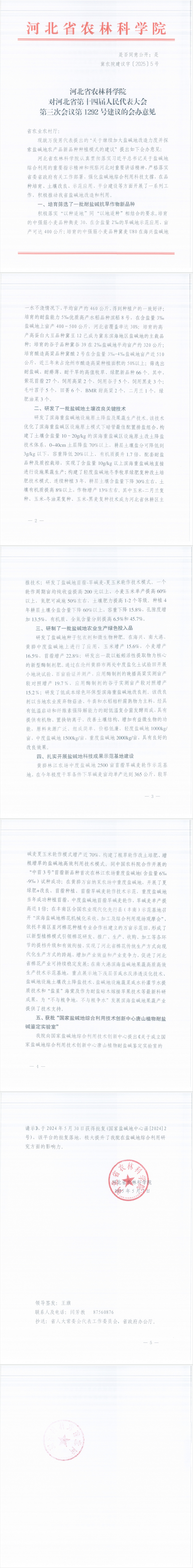 冀农院建议字〔2025〕5号—对河北省第十四届人民代表大会第三次会议第1292号建议的会办意见(关于继续加大盐碱地改造力度并探索盐碱地农产品新品种种植模式的建议)