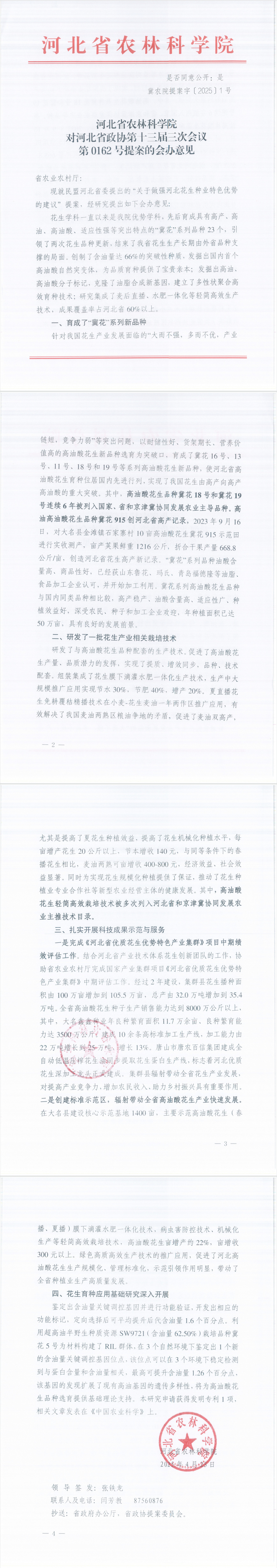 冀农院提案字〔2025〕1号—河北省政协第十三届三次会议第0162号提案的会办意见(关于做强河北花生种业特色优势的建议)