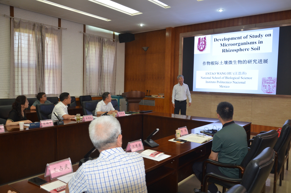2023年7月5日,资环所邀请墨西哥国立理工大学终身教授entao wang来所进行学术交流。报告会由资环所学术委员会主任贾良良副所长主持。院对外合作部张梅申部长、资环所岳增良所长、孙世友副所长及资环所、棉花所等相关科研人员30余人参加。