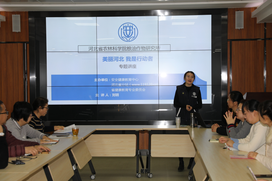 为贯党的十九大及全国生态环境保护大会精神,树立全民环境健康理念和健康生活方式,同时为了提高我单位全员消防安全意识和技能,避免火灾事故的发生,2019年12月5日上午,粮油所组织职工进行了健康及消防知识培训。 通过培训,让大家了解了垃圾分类、健康饮水等知识。同时也了解了办公区域火灾发生的原因、种类及常见的火灾隐患;电器设备的使用及火灾预防对策;家庭发生火灾的特点、防火自救及正确逃生疏散方法,收到了预期的效果。