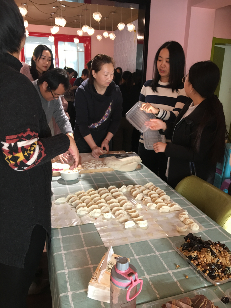 随后各科室表演了精彩的节目,声像网络研究室带来了女声独唱《蝶恋花》,规划室带来了歌伴舞《知音》,精准农业研究室带来了情景剧表演。大家生动形象的表演,瞬间嗨爆全场,有些同志还展示了即兴作诗、武术等才艺。在欣赏节目的同时,穿插了“你来比划我来猜”、“萝卜蹲”、抽奖等各种小游戏。活动欢声笑语,热闹非凡。在包饺子活动中,大家更是热情高涨,撸起袖子加入包饺子阵营,你洗菜我切菜,你调馅我和面,你擀皮我来包,你来煮我来端,大家各司其职,团结协作,当一盘盘热气腾腾的饺子端上桌子时,大家边吃边交流,使大家感受到了农信所这个大家庭的和谐与温暖。