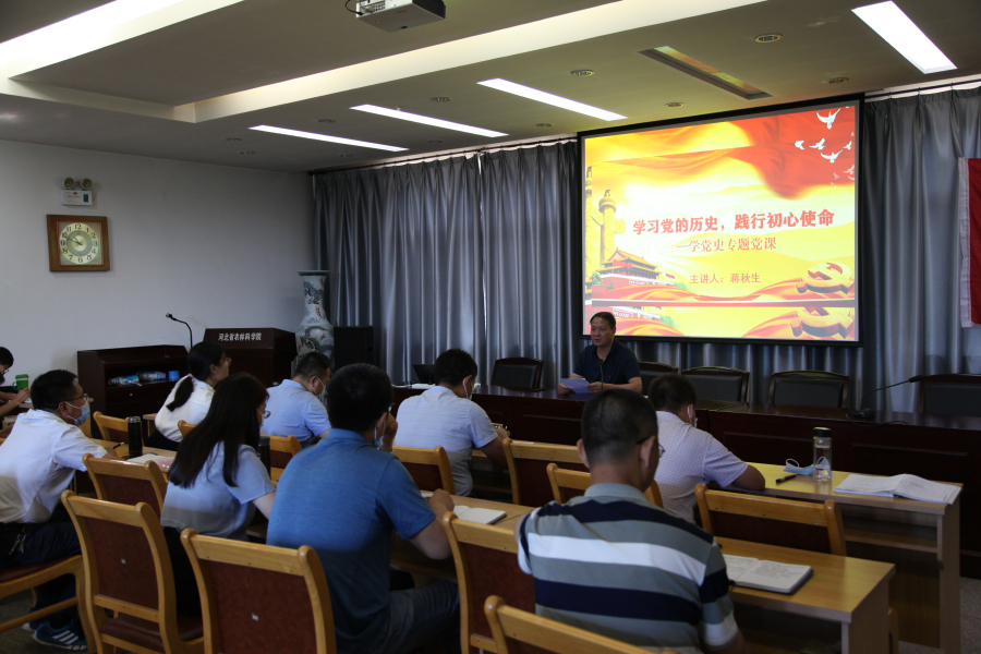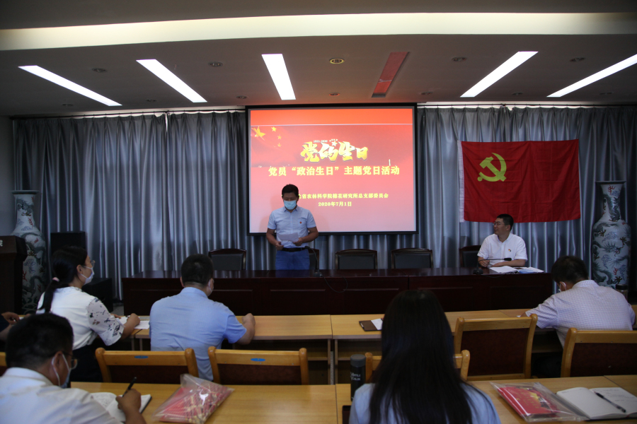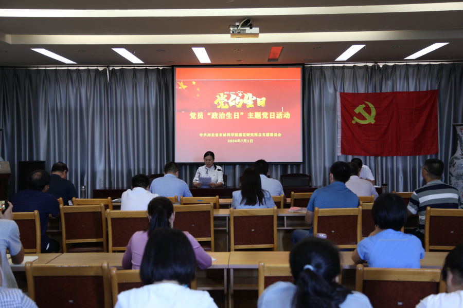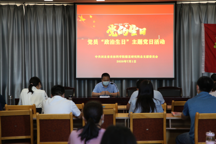 7月1日上午,棉花所召开全体党员大会,庆祝建党99周年。会议由张建宏副所长主持。党总支书记蒋秋生首先讲话,介绍了此次“七一”系列活动的意义和背景。随后,依次按议程开展了五项活动。一是全体党员起立齐唱“没有共产党就有新中国”。二是党总支书记蒋秋生带领大家面对党旗进行了集体庄严宣誓,重温了入党誓词。三是开展“党员‘政治生日'主题党日活动”。科研、行政党支部书记首先代表支部全体党员上台领取党员“政治生日”贺卡和生日礼物,随后四位党员代表回忆入党初心,发表了“政治生日”感言。四是召开“优秀共产党员先进事迹报告会”。两位院“新时代优秀共产党员”耿军义、张建宏同志分别从“科研工作的几点感悟”和“援疆工作情况”等方面做了先进事迹报告。五是开展“书记讲党课”活动。党总支书记蒋秋生以“学习党的历史,践行初心使命”为题,从为什么学党史,党的历史贡献、党史发展脉络以及如何学好党史等三方面讲授了学党史专题党课。