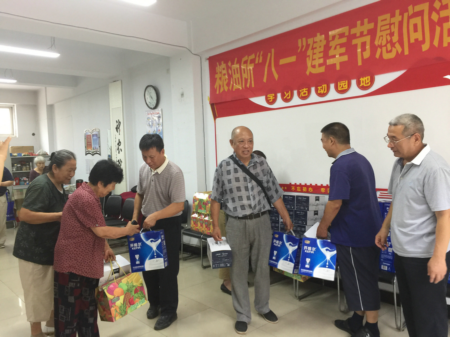 在“八一”建军节来临之际,粮油所组织退役军人和现役军人家属开展座谈及慰问活动,21名退役军人、1人现役军人家属,所党总支书记李辉,副所长黄瑞恒、离退休支部委员及相关部门人员参加活动。