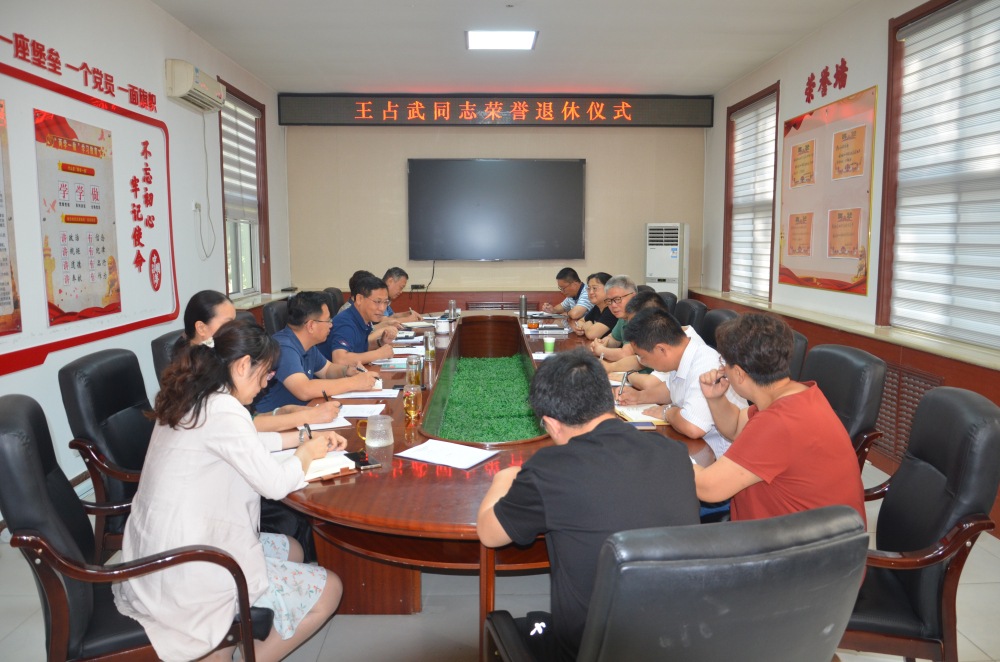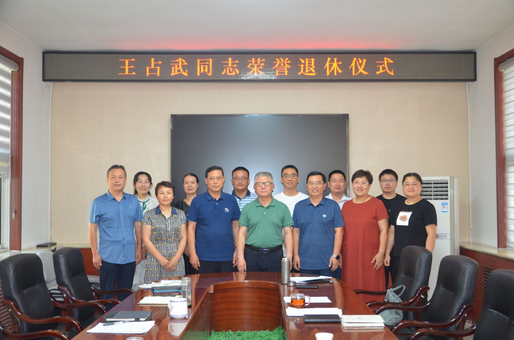 2023年6月29日,资环所举办王占武同志荣誉退休仪式,仪式由资环所党总支书记、所长岳增良主持,资环所领导班子成员及各部门负责人参加。退休仪式座谈会上,岳增良书记热情回顾了王占武同志工作39年来带领团队为农业科研事业做出的突出贡献,并敬勉王占武同志身份转换后,继续在新时代展现新担当、新作为,为农业科研事业继续发光发热做好表率,做到退休不“褪色”。王占武同志发表了退休感言。资环所工会主席马晓君代表工会向王占武同志赠送了退休纪念品;最后,与会同志合影留念。