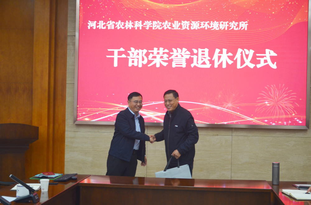 2023年10月12日,资环所举办原总支书记、所长岳增良同志荣誉退休仪式,仪式由资环所副书记王丽英主持,所班子成员及全体干部职工参加。退休仪式上,王丽英代表全体职工热情回顾了岳增良同志工作38年来为农业科研事业做出的突出贡献,特别是到资环所工作期间,带领全所干部职工克服疫情不利影响,在补短板、谋发展上取得的系列突破:规划了资环学科体系,荣获了所史上第一个省科技进步一等奖和国家自然科学基金项目,建立了集展示全所成果为一体的示范基地,建设了高水平的河北省土壤展览室,所实验室实现了认证,引进了一批高素质青年科技人员,培树了所级先进典型,完善了各项规章制度,上述工作为研究所今后发展奠定了坚实的基础。部分职工代表通过实例肯定了他的贡献,大家一致希望岳增良同志老骥伏枥,一如既往地关注资环所的发展,祝愿老所长身体健康,快乐生活!岳增良同志也发表了退休感言,并衷心祝愿资环所明天更美好!
