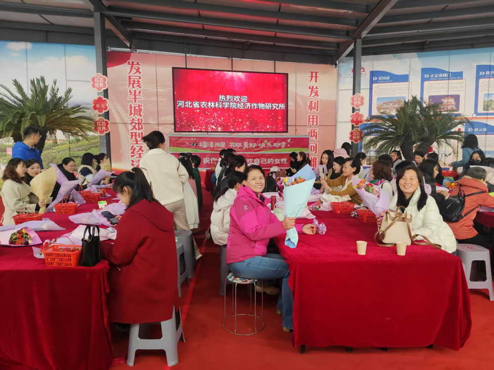 经作所党总支书记阎立波带队,全所女职工们来到正定福泽果蔬花卉基地,参观考察了设施果蔬、花卉棚室无公害栽培模式,详细了解了该基地以种植、加工、销售、农业采摘观光、花艺体验等为一体的产业链整合的新型市场化运作模式,共同体验了草莓采摘和艺术插花活动。下午一起参观了正定博物馆,切身感受这座千年历史文化名城的古风古韵。活动期间,还将女同志近几年取得的荣誉、活动照片以及个人风采用视频展播的形式投放在大屏幕上,每一项荣誉都凝结着女同志的智慧与汗水,每一张照片都展现出现代女性科技工作者的精神风貌。新时代新征程面临着机遇和挑战,对女同志同样提出更高的要求,通过开展此次“跟党奋进新征程 巾帼建功新时代”特别活动,更加激发了广大妇女同志们的工作热情,激励她们更好地投身农业科技现代化、全面推进中华民族伟大复兴伟大使命中去。