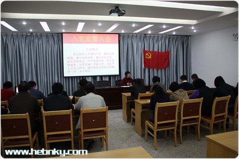 12月23日上午,棉花所党总支举行新党员入党宣誓大会。新党员孙辉同志在领誓人、党总支书记张香云的带领下,面向党旗进行了庄严宣誓并向党表示了决心。 棉花所党总支书记张香云在讲话中鼓励新老党员加强学习,要谦虚谨慎、戒骄戒躁,自觉遵守党的纪律,时刻以党员标准严格要求自己,并向与会同志提出了要求和希望。宣誓大会由党总支副书记蒋秋生主持。