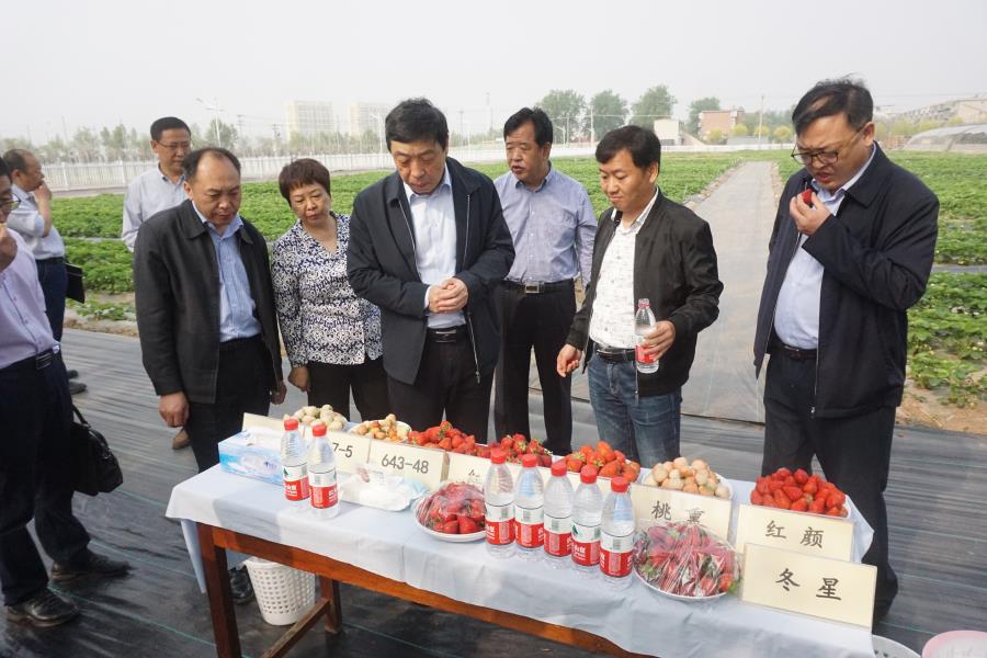 4月24日上午,时清霜副省长到我院就农业科技创新工作进行调研。先后到石家庄果树研究所草莓研究室、梨改良中心,经济作物研究所药用植物研究中心,蔬菜“双减”栽培、设施番茄基质栽培温室进行考察指导,并召开工作座谈会。