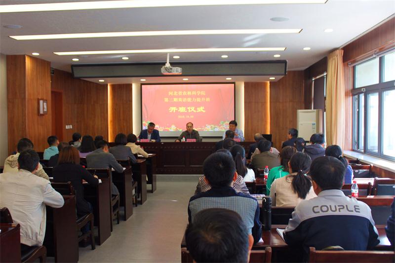 河北省农林科学院第二期英语能力提升培训班开班仪式于2018年10月9日在河北师范大学外国语学院举行。共有来自10个研究所23名青年科研骨干参加这次为期90天的培训。