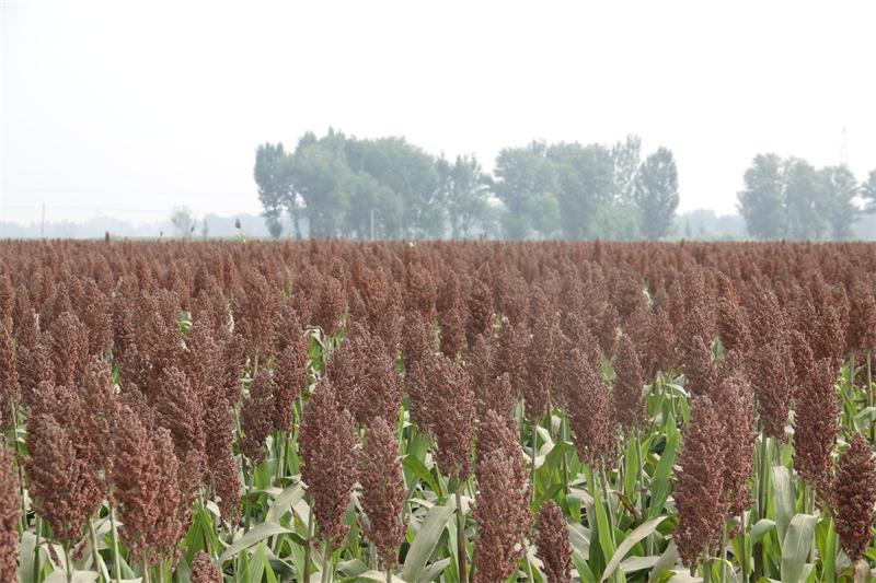 阜城高粱基地是深入推动省农科院与阜城县的院县科技合作的硕果,充分发挥区域优势,促进农业产业发展,提升全产业链服务能力,实现龙头企业、园区增效、农民增收的双赢。在我院和当地政府的指导协助下,谷子所示范了自育糯高粱新品种冀酿1号和冀酿2号,以及麦茬夏播高产栽培技术、绿色免施农药技术、全程机械化技术等配套技术。在我院和谷子所的推动下阜城县投资2.8亿元建设了阜星科技现代农业园区,吸收12个村、组建12个粮食种植专业合作社,入社成员1314户。