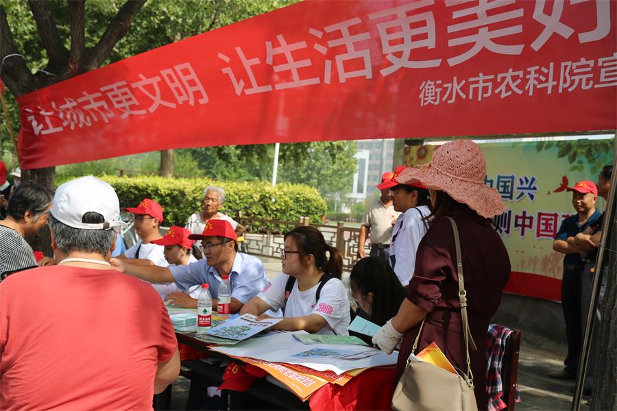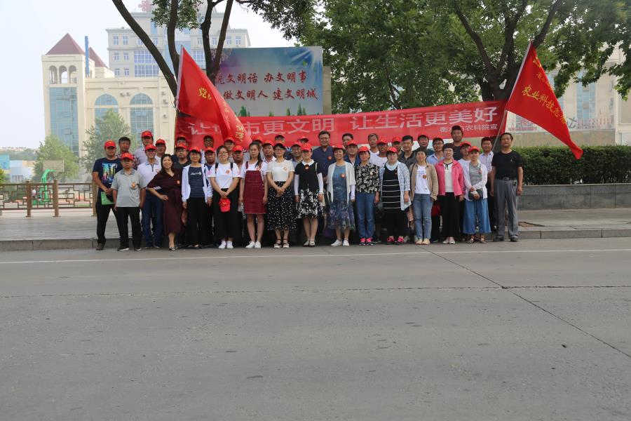 6月29日上午,旱作所在衡水市休闲广场开展“善美衡水•社会志愿服务”特色主题党日活动。党总支书记庞昭进同志带领全所43名党员干部职工参加了本次活动。