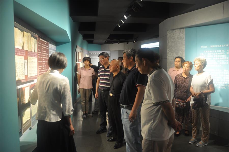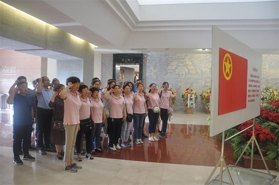 纪念馆38级台阶象征着李大钊同志走过的38年人生岁月,步入庄严的大厅,首先映入眼帘的是李大钊同志汉白玉雕像,讲解员生动的讲述和展厅内的实物、图片和文献向我们展现了李大钊同志崇高的革命理想,无私的革命行动,清廉的简朴生活,言行一致的道义,让每位同志无不为之动容。在庄严的党旗下,党总支书记郭金霞同志带领大家重温了入党誓词,