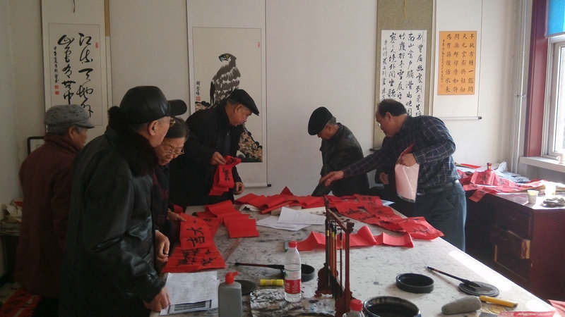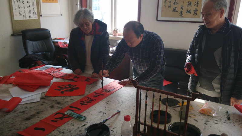 遗传所书画室在羊年春节到来之际,组织书法爱好者为遗传所退休职工书写了数十幅洋溢着浓浓节日气氛的春联和福字,给退休职工送去了新春的祝福和慰问。