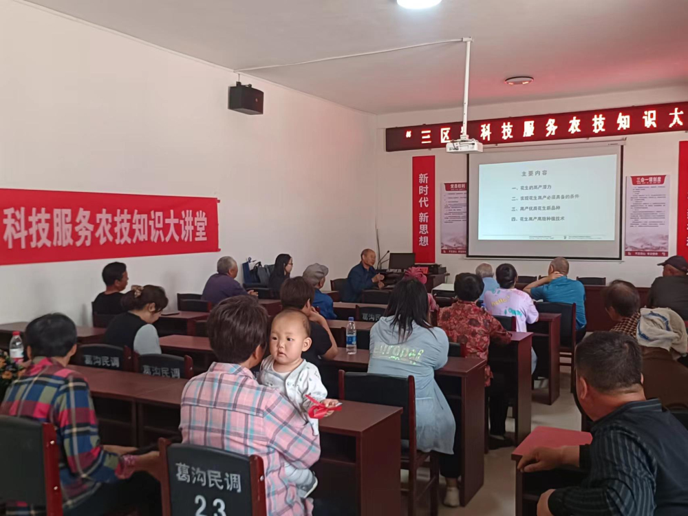 培训会上,崔彦宏教授全面讲解了玉米从播种到收获各项关键技术,详细介绍了玉米施肥策略,玉米倒伏的原因及预防方法,对玉米栽培过程中存在的误区和需要注意的问题等进行了重点培训。程增书研究员针对该村花生种植的技术需求,从花生品种选择及品种的特征特性入手,结合当地的气候特点和土壤特性,对实现花生高产高效的种植技术进行了培训,并现场解答了农民在花生生产上遇到的实际问题。