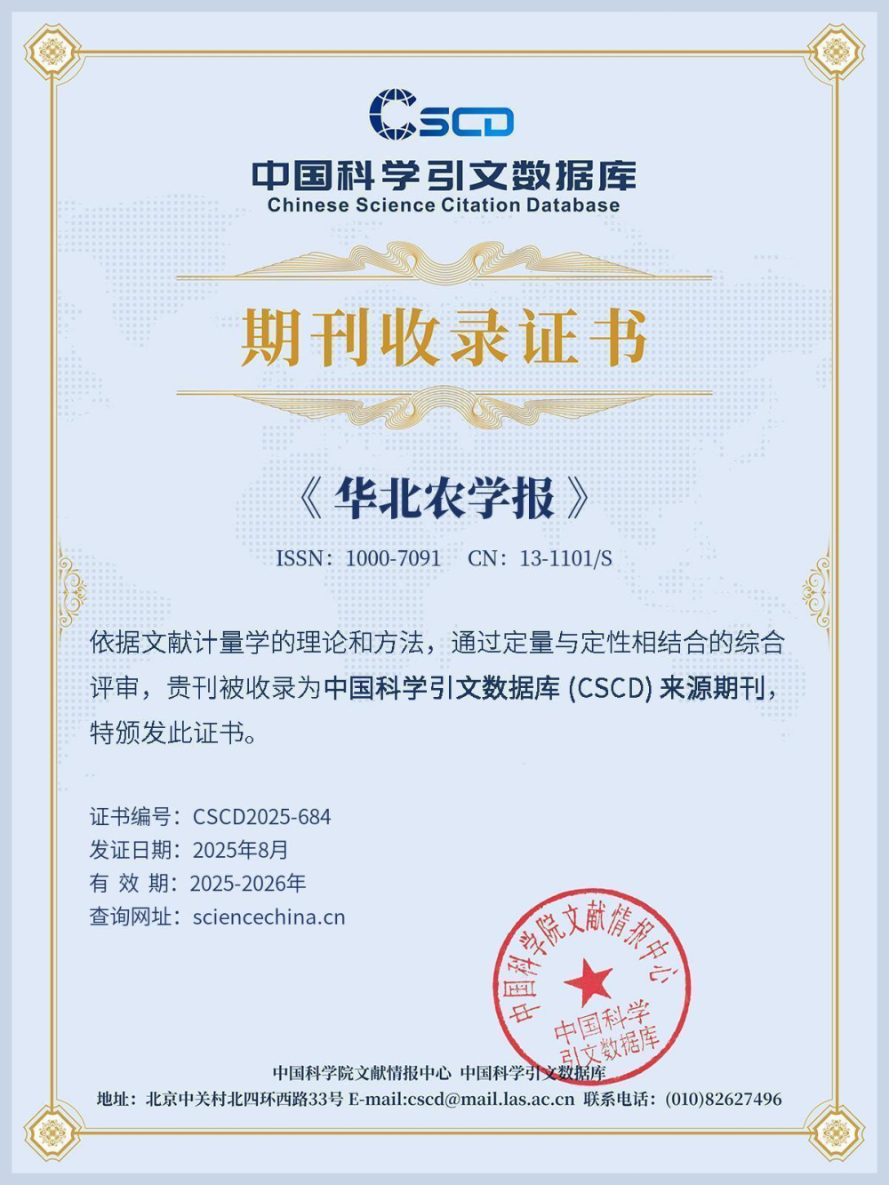 近日,中国科学院文献情报中心发布了中国科学引文数据库(chinese science citation database,简称cscd) 2025—2026年度来源期刊遴选结果。我院主管、华北六院联办的《华北农学报》再次入选中国科学引文数据库核心库。