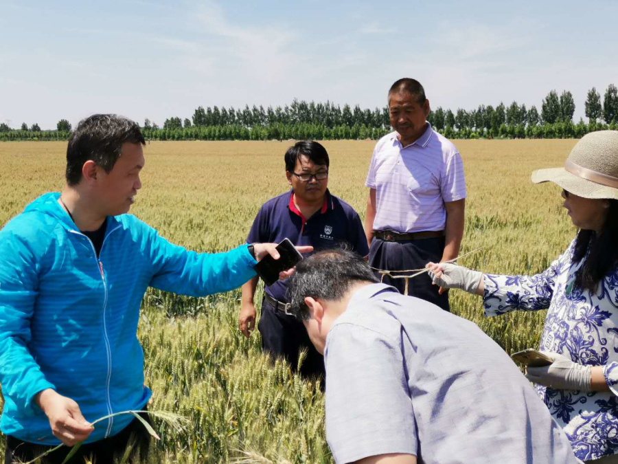 5月26日,应中国工程院张福锁院士团队邀请,我院资环所贾良良研究员、粮油所贾秀领研究员等一行5人赴曲周县开展冬小麦病害诊断与防治田间技术指导。