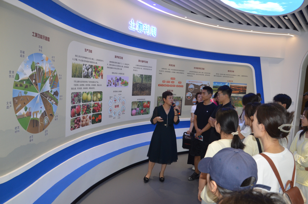 活动期间,王丽英研究员亲自带领师生们参观了河北省土壤展览室。在展览室内,王丽英研究员详细介绍了土壤起源、分类、功能、保护和利用等基础知识,并结合河北省的实际情况,讲解了河北土壤类型及综合利用现状。通过丰富的实物展示、图文资料及生动的讲解,学生们对土壤科学有了更为直观和深入的理解。