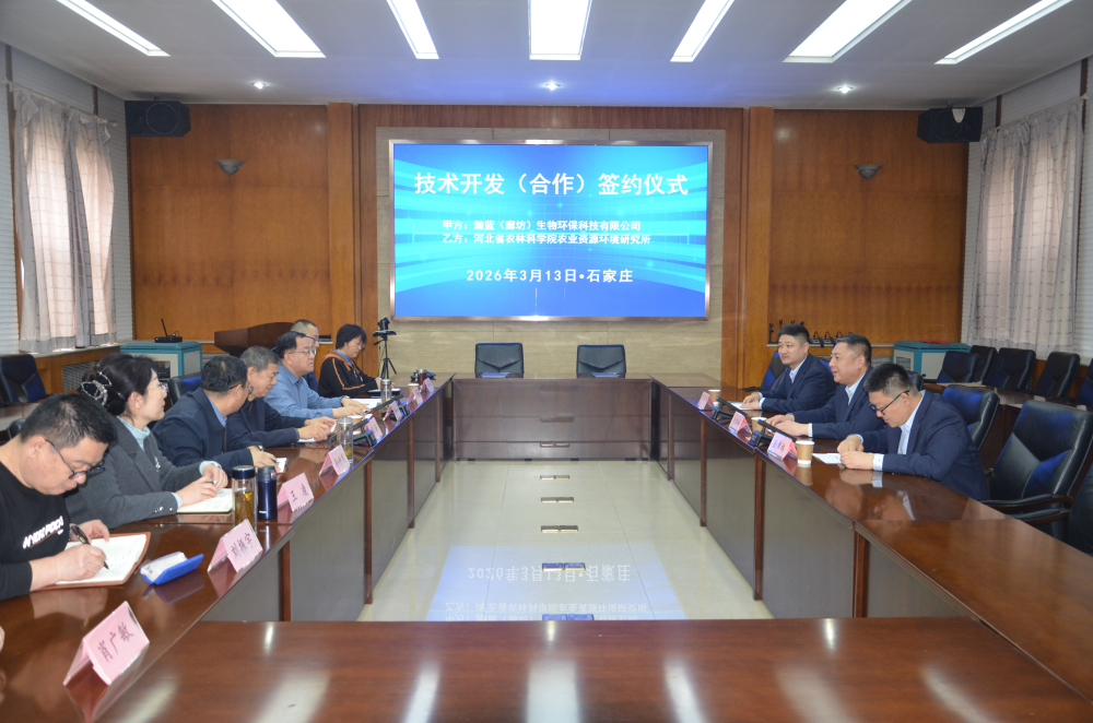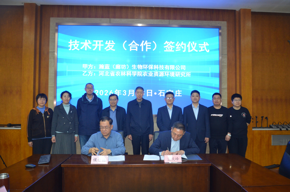 2026年3月13日,我院资环所与瀚蓝(廊坊)生物环保科技有限公司科技合作签约仪式在石家庄举行。双方在前期深入交流、实地调研基础上,围绕城市居民粪便沼液还田应用研究签署合作协议,共同推动有机废弃物资源化利用,助力我省农业绿色高质量发展。
