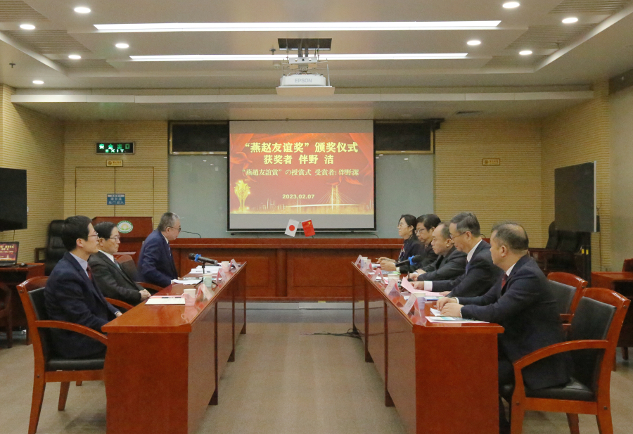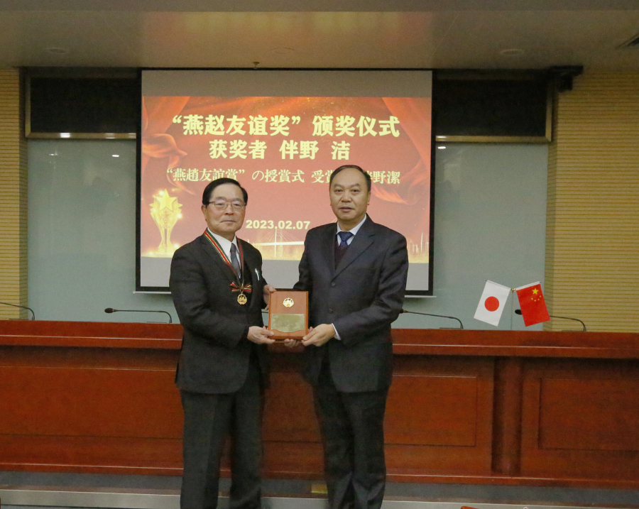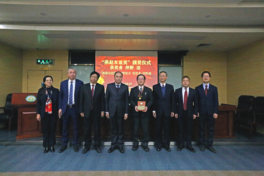 2023年2月7日下午,我院举办“燕赵友谊奖”颁奖仪式,为日本伴野洁教授颁奖。院党组书记、院长张铁龙,院党组成员、副院长孙世刚,省科技厅外国专家管理处处长王仲群、二级调研员杨利军出席了颁奖仪式,仪式由对外合作部部长张梅申主持。