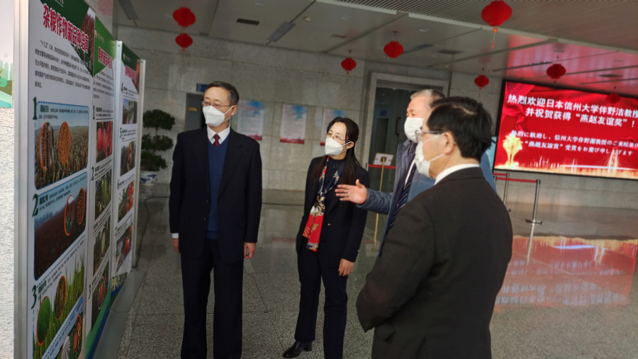 颁奖仪式结束后,伴野洁教授在孙世刚副院长等的陪同下,在神农大厦一楼大厅参观了院成果展览。