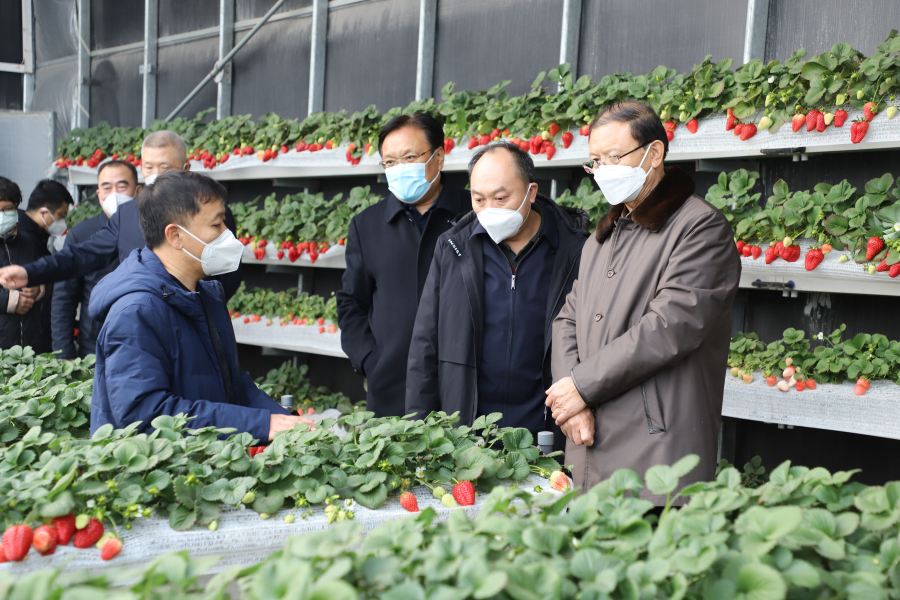 2023年2月8日下午,省政协副主席张古江到我院调研指导农业科技创新工作。在我院张铁龙院长的陪同下,张古江副主席参观了我院科技创新成果展示,观看了“河北农科院这十年”宣传片,实地到草莓育种基地、蔬菜育种育苗基地、药用植物种质资源库和质量追溯平台等科研一线深入了解农业科研工作。张古江副主席对我院在科技创新和科技服务方面取得的成绩给予了充分肯定,并在种业创新,保障粮食和重要农产品稳定安全供给,科技支撑乡村产业振兴,加强科技人才队伍建设,为建设农业强省贡献科技力量等方面提出了许多指导性意见。