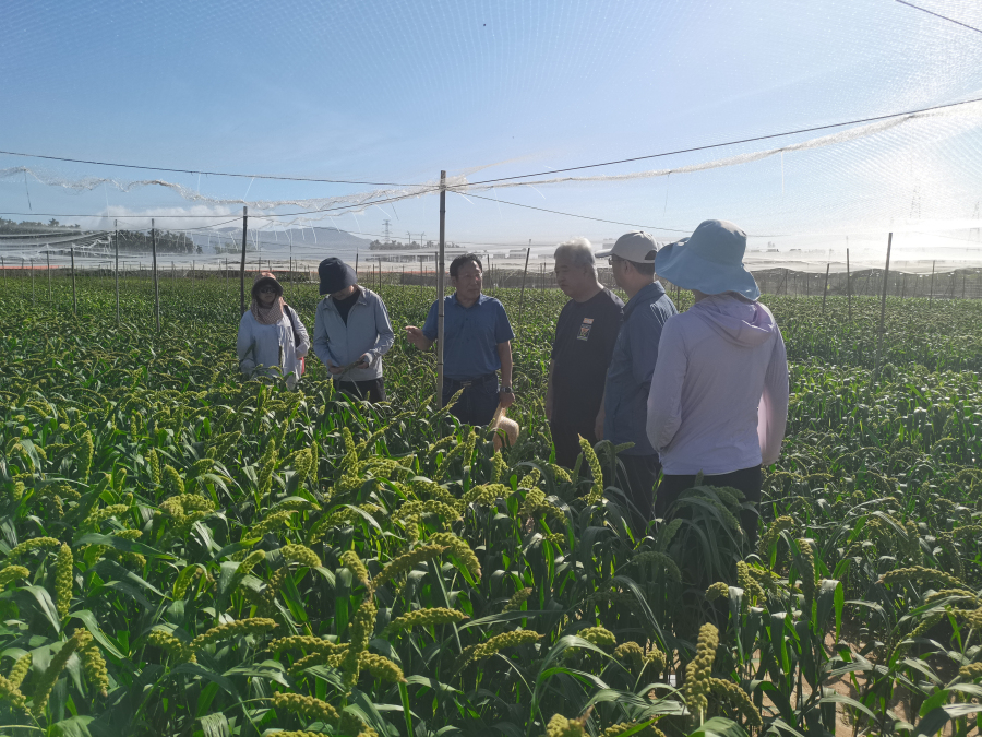 张建军、孙世刚一行到粮油、棉花、谷子、旱作、植保所等南繁试验基地,现场考察了棉花、大豆、玉米、高粱、谷子等作物的繁育和试验基地的建设情况,认真听取了科研人员关于2022-2023年各作物南繁育种工作进展汇报,细心查看并询问了科研人员办公、住宿等基本工作和生活条件情况。三亚试验站是我院多种作物南繁加代的重要试验基地,一代代南繁科技人员的辛勤付出,加速着新品种的选育过程,为更快培育出大量优质、高产新品种,实现我省种业振兴提供了坚实的基础和技术保障。两位院领导亲切慰问了全体坚守岗位、默默奉献的南繁基地工作人员,并鼓励大家继续砥砺奋进,勇于创新,不断推进我院育种工作更快更好发展。