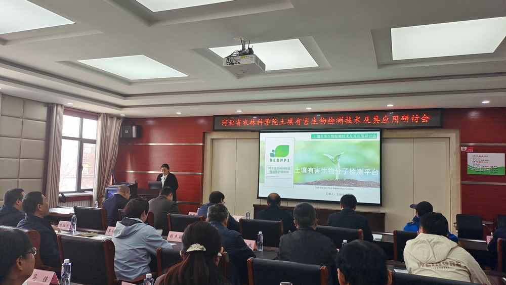 2023年3月31日,由河北省农林科学院科研管理部主办、植物保护研究所承办的“土壤有害生物检测技术及应用研讨会”在植保所成功举办。科研管理部部长刘孟朝、副部长李耀发,植保所所长马平,副所长陈书龙、蔡春锡、郭庆港,粮油所、石果所、棉花所、资环所、滨海所和植保所等6个研究所不同研究领域的专家及相关人员30余人参加了此次研讨会,会议由郭庆港副所长主持。
