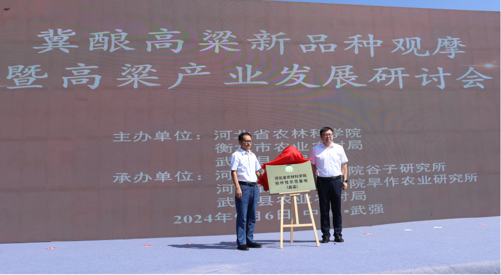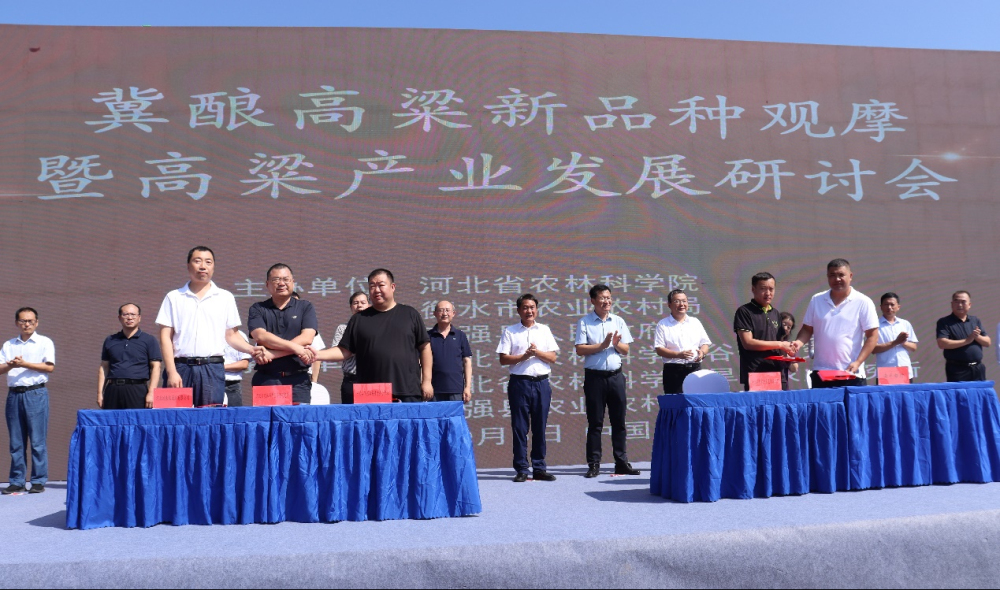 本次大会涵盖“冀酿”系列高粱新品种订单种植、购销、酿酒加工签订仪式,河北省农林科学院武强高粱标杆性示范基地揭牌仪式,冀酿高粱新品种示范基地现场观摩以及冀酿高粱深加工现金网官网的产品展示等环节,内容丰富,精彩纷呈,签约金额达100万元以上。通过此次会议,将持续推动冀酿系列高粱新品种转让,扩大冀酿系列品种在全国的种植面积,夯实武强(高粱)标杆性示范基地建设成果,促进当地原粮订单种植销售模式推广,推动高粱产业绿色高质量发展。