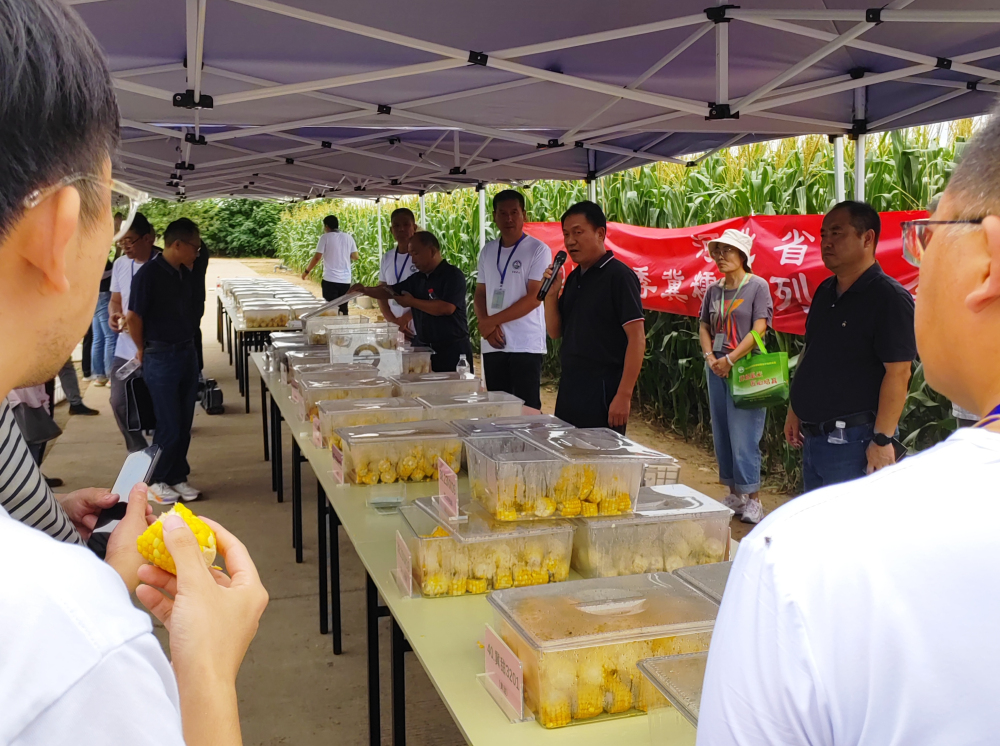 在粮油所堤上试验站,粮油所副所长闫龙重点介绍了试验站承担的各种农作物试验情况,并对鲜食玉米科研团队提出新的要求。省玉米产业技术体系鲜食玉米与加工岗位专家王延兵主要介绍了鲜食玉米科研团队本年度主要工作及进展情况。参会代表对现场的41个新品种进行了现场观摩和蒸煮品质品尝,根据鲜食玉米的气味、色泽、糯性、甜度、脆嫩性、皮渣率等特性,结合品种的田间长势,进行综合评价,通过无记名投票,选出3个最具推广潜力的优秀新品种:冀糯175、冀糯2201、冀甜3202,评比结果由省玉米产业体系首席专家崔彦宏教授进行了现场宣布。