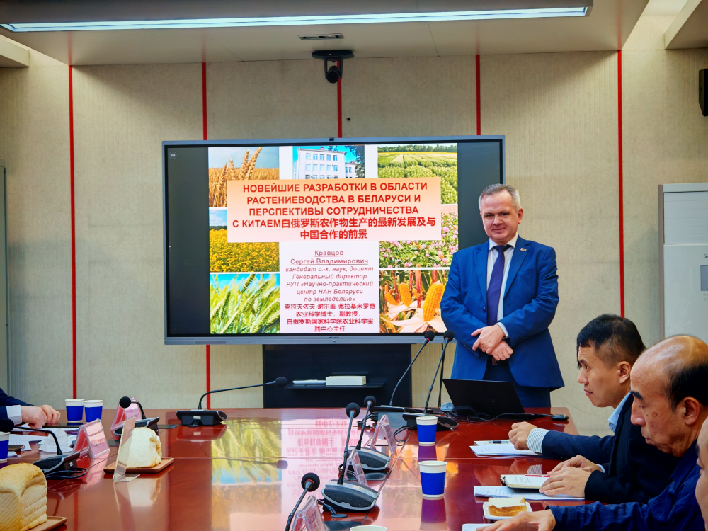 院党组成员、副院长张强与代表团进行交流座谈,向代表团一行详细介绍了我院最新科研进展以及近期取得的成果。白俄罗斯国家科学院主席团副主席卡扎基耶维奇·彼得·彼得罗维奇介绍了白俄罗斯国家科学院的基本情况。双方就加强务实合作进行了交流,达成了广泛共识。省科技厅国际合作处、省国际人才交流协会、省农学会、院对外合作部、粮油所负责人参加了有关座谈。