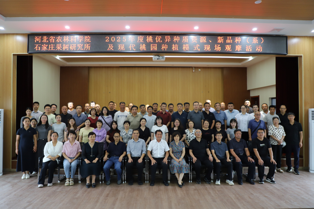 2025年8月4日,石果所举办了2025年度桃优异种质资源、新品种(系)及现代桃园种植模式现场品鉴观摩活动,院党组成员、副院长王旗出席活动并作总结讲话,省农业农村厅特色产业站负责同志,省现代农业产业技术体系桃创新团队岗站专家团队,部分桃主产县农业部门相关人员、新型经营主体、果农等110余人参加活动。