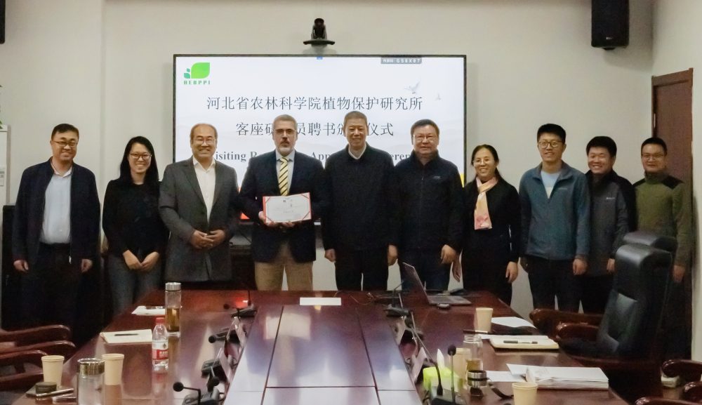 植保所所长郭庆港介绍了研究所工作成果,表达了深入合作意向。spetz研究员以"crispr技术在农业中的应用"为题,系统阐述了基因编辑技术在精准抗性育种如抗病、抗虫、抗逆等方面的最新研究进展,探讨了其在植物病害防控领域的应用前景,为作物病害绿色防控研究提供了重要技术参考。王亚娇博士汇报了与spetz研究员合作项目“利用crispr基因编辑技术研究病毒pva的复制机制”的阶段性研究成果。同时,为进一步深化合作,植保所特聘spetz研究员为客座研究员并举行聘任仪式。张强副院长表示希望通过此次合作,引进先进科研理念,推动双方在作物病害防控领域深度合作,并加强青年科技人才的培养。