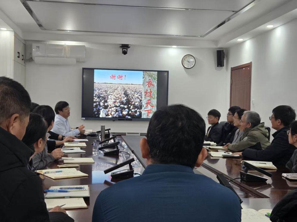 为提升棉花新品种选育水平,提高棉花新品种审定申报书质量,2026年1月29日,棉花所邀请国家棉花品种审定委员会主任委员周关印研究员来所开展专题培训交流,棉花所育种相关研究室及科管科全体成员参加。