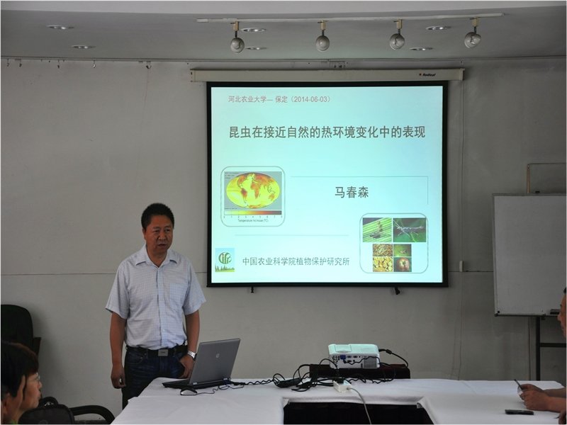 2014年6月4日,中国农业科学院植保所马春森研究员应邀到我院植保所进行学术访问。期间,马春森研究员为植保所科技人员作了题为“昆虫在接近自然的热环境变化中的表现”的学术报告,并与该所相关学科专家进行了深入探讨交流,达成了初步合作意向。