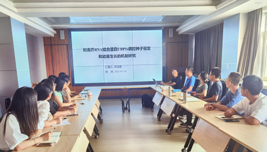 会议由张颖君博士主持。首先,时会影博士就其在博士期间的研究工作—“拟南芥ubp1蛋白调控种子萌发和幼苗生长的机制”的进展情况进行了介绍;然后,王珅就食用豆研究室中“绿豆遗传转化体系构建及检测”的研究情况进行了汇报交流;最后,小麦研究中心孙丽静博士就小麦灌浆缺陷材料的研究情况进行汇报。