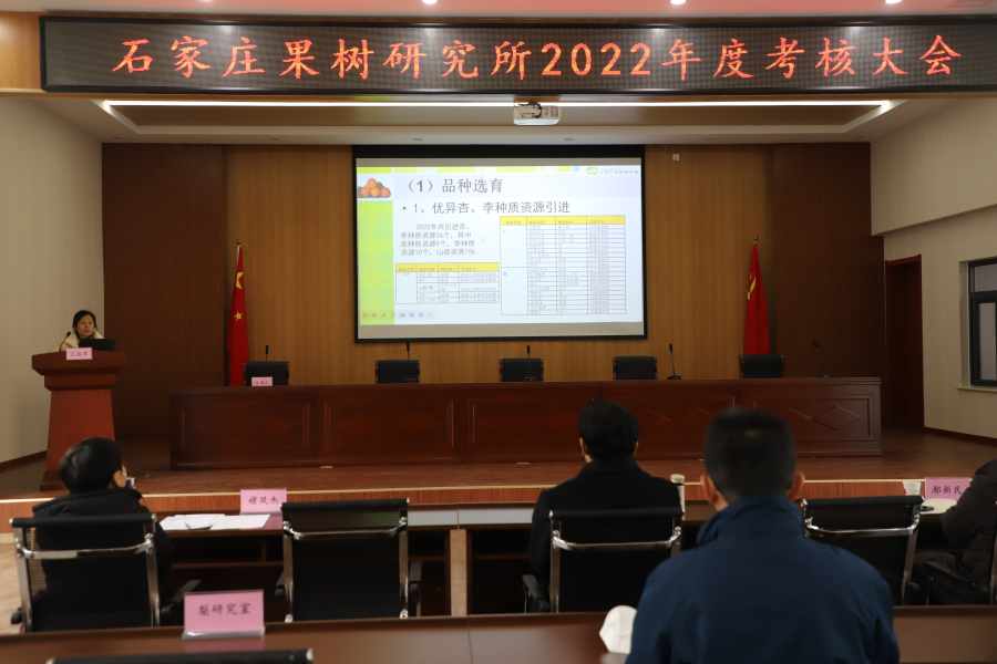2023年1月3日,石家庄果树研究所召开2022年度考核大会和领导班子考核测评会。会议由总支书记褚凤杰主持。