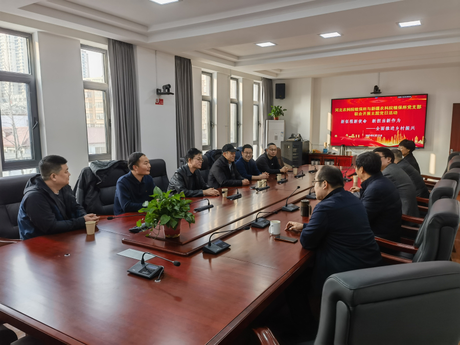 2023年2月15日,新疆农科院植保所所长郭文超研究员、总支书记李广阔研究员等一行六人到我院植保所联合开展“新征程心使命 新担当新作为”主题党日活动并进行工作座谈交流。中国农科院研究生院原党委副书记、副院长陈万权研究员,植保所党总支书记、所长马平,副所长陈书龙、蔡春锡、郭庆港及有关专家参加了座谈。
