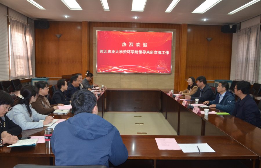 岳增良所长介绍了资环所科研、管理、党建方面的总体情况及学科建设方向;赵增锋书记对河北农大资环学院学科建设、教学科研、党建等方面进行介绍,张蓬涛院长介绍了学院建设和人才培养情况。座谈结束后,共同参观了所实验中心。