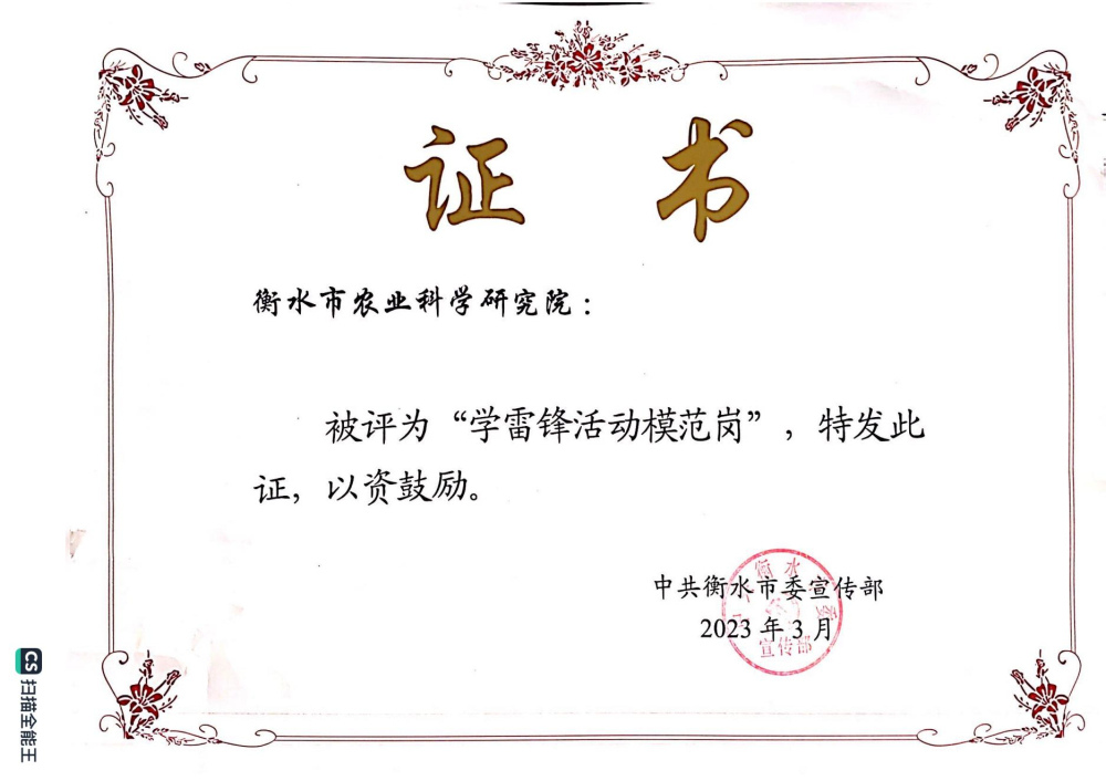 近期,旱作所被中共衡水市委宣传部评为“全市学雷锋活动模范岗”。近年来,旱作所在院党组的正确领导下,以科技助农为己任,积极开展学雷锋志愿服务活动,组织科技人员组建科技志愿服务团队,定期开展农技培训,将自身专业优势和志愿服务精神转化为科技助农实践。在农业生产重要环节和关键阶段,科研专家深入田间地头指导生产,积极为农场、合作社、种植大户等农业生产经营主体提供技术服务,特别是面对农业自然灾害,科技志愿服务队往往第一时间深入一线,及时进行防灾减灾技术指导,最大限度保障农民利益。以此次授牌为契机,旱作所全体科技工作者将始终坚持稳产保供目标,持续深入基层开展科技服务,从生产一线凝炼科研选题,开展关键核心技术协同攻关,真正把论文写在祖国大地上,为保障国家粮食安全和重要农产品供给作出更大贡献。