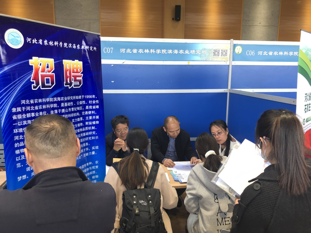 2023年4月26日,河北省农林科学院滨海农业研究所所长刘善资、副所长薛志忠一行4人参加了在中国农业大学举行的“第八届全国农业高校、科研院所高层次人才引进洽谈会”。此次高洽会由中国农业大学就业创业办公室主办,邀请了来自22个省市的30余家农业高校、科研院所参加。招聘会现场,滨海农业研究所与学生们进行了热烈交流洽谈,聚焦提升“专业与岗位”的精准匹配度,重点介绍研究所情况和招聘岗位相关优厚待遇的人才政策,发放了200余份宣传材料。经现场筛选,接收学术成果、研究方向与研究所研究学科发展契合的硕博应届毕业生简历27份。本次高洽会在引进急需、紧缺人才方面取得了良好的效果。