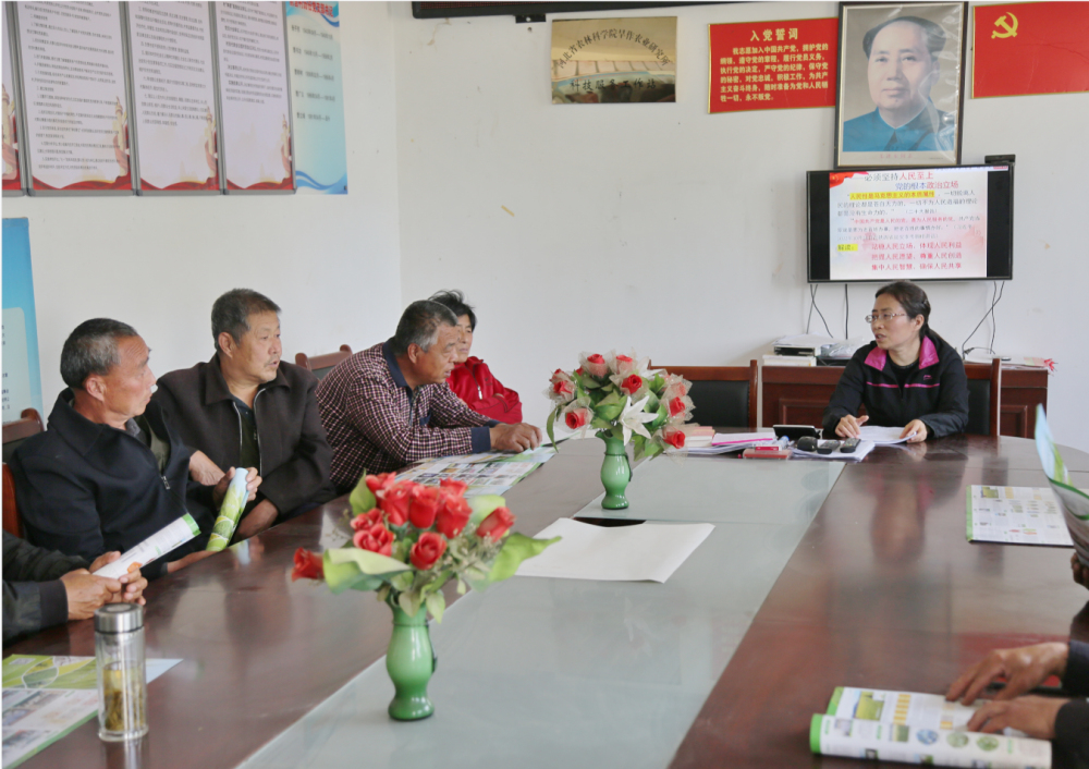 “习近平总书记全票当选国家主席、中央军委主席,是党心所向、民心所盼、众望所归,是建设中国特色社会主义现代化强国、实现中华民族伟大复兴的希望所在、力量所在、胜利所在……”曹彩云向村民们重点介绍了今年全国两会最具里程碑意义的成果。