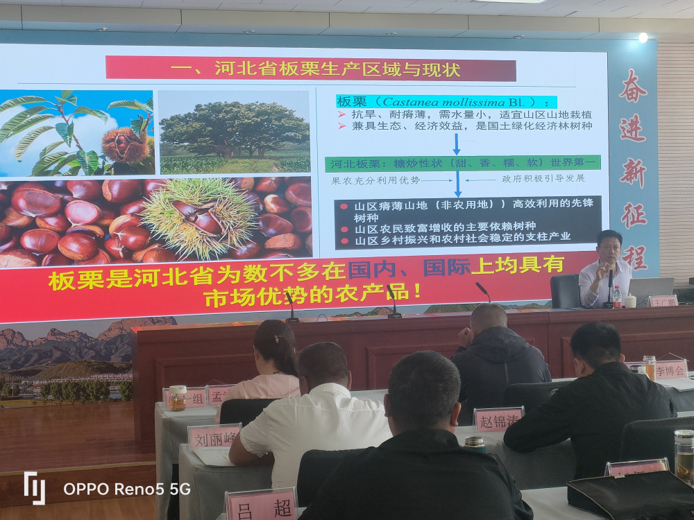 2023年5月13日,由中共河北省委组织部主办的2023年度省“万人示范培训”专题班在承德市周台子培训中心开班。受河北省农林科学院委派,昌果所王广鹏研究员来到培训班为学员授课,王广鹏研究员首先做了《河北省板栗市场现状与思考》的报告,讲授了抗旱耐瘠薄板栗树种在山区农村荒地资源开发中的应用前景与市场潜力,之后针对如何高质量发展这一产业讲授了《板栗现代省力化管理技术》。通过专业讲授,参训学员对在农村山坡荒地、土壤瘠薄非耕地发展板栗产业实现土地高效利用表现出了浓厚的兴趣,课下纷纷咨询相关发展条件、要求和品种等内容,培训成效显著。来自保定、张家口、秦皇岛三个地市的105名农村党组织书记参加了本次培训。