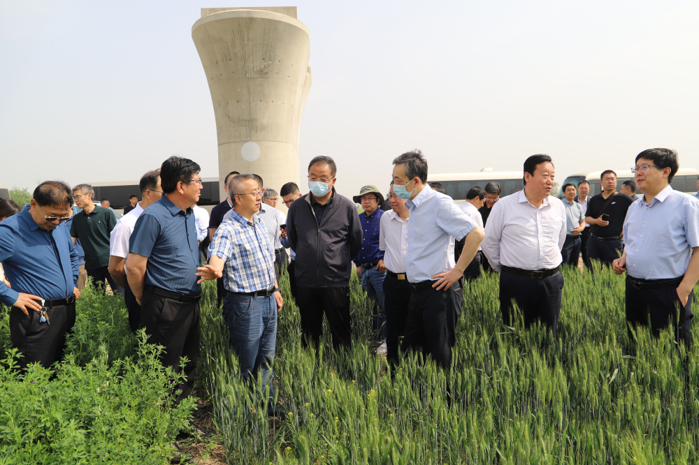 2023年5月13-14日,国家发展和改革委员会、财政部、农业农村部、水利部、自然资源部、生态环境部等部委相关领导,在河北省发展和改革委员会、财政厅、农业农村厅、水利厅、自然资源厅、生态环境厅、沧州市、黄骅市等领导陪同下,在黄骅市开展了盐碱地利用情况调研。我院资环所刘忠宽博士全程参与调研并作专题汇报。在资环所苜蓿与冬小麦轮作示范基地,刘忠宽博士详细汇报了该模式的科技创新、改土培肥、增产增效等情况,与会领导对我院资环所在盐碱地改良利用方面的工作给予了充分肯定。在14日下午召开的室内交流会上,刘忠宽博士对近20年在沧州盐碱地改良利用方面的工作作了专题汇报。