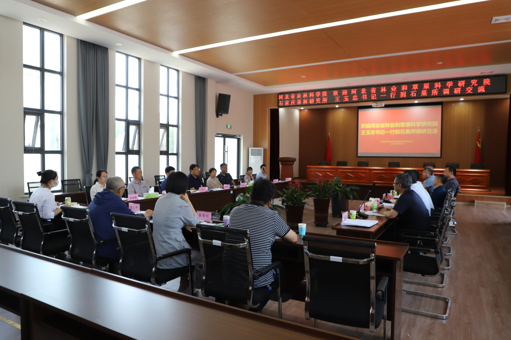 2023年6月1日,河北省林业和草原科学研究院党委书记王玉忠一行9人到石家庄果树研究所开展工作调研交流。