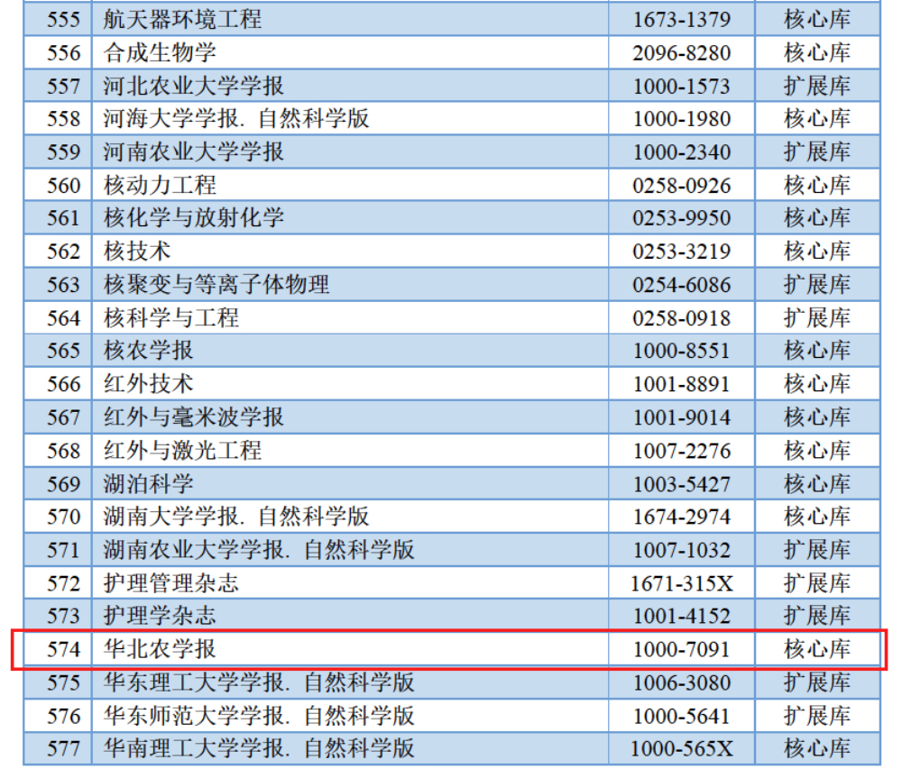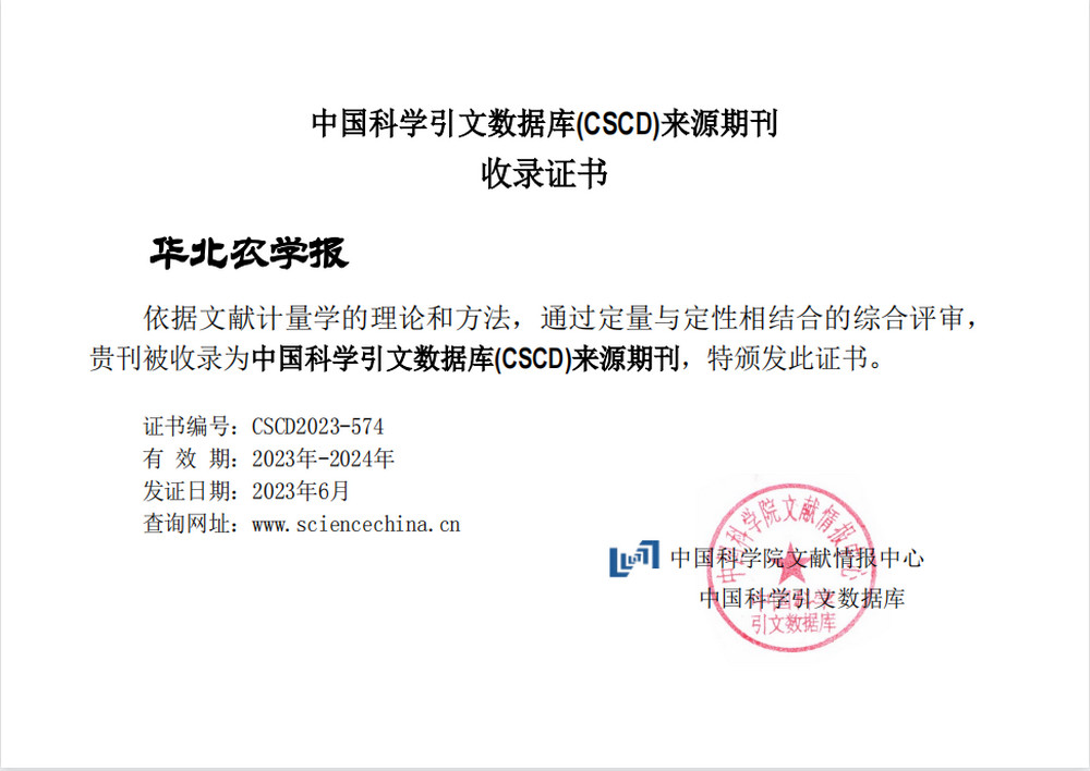 中国科学引文数据库(chinese science citation database,简称cscd)在学术界享有盛誉,被誉为“中国的sci”。中国科学引文数据库来源期刊每两年遴选一次,经过中国科学引文数据库定量遴选、专家定性评估, 2023-2024年度中国科学引文数据库收录来源期刊1339种,其中核心库995种;扩展库344种。在华北六院及行业主管部门的大力支持下,经过学报六个编辑室共同努力,《华北农学报》再次入选中国科学引文数据库(cscd)核心库!这是《华北农学报》自1996年首次入选中国科学引文数据库,2007年入选核心库以来连续9次入选中国科学引文数据库(cscd)核心库。