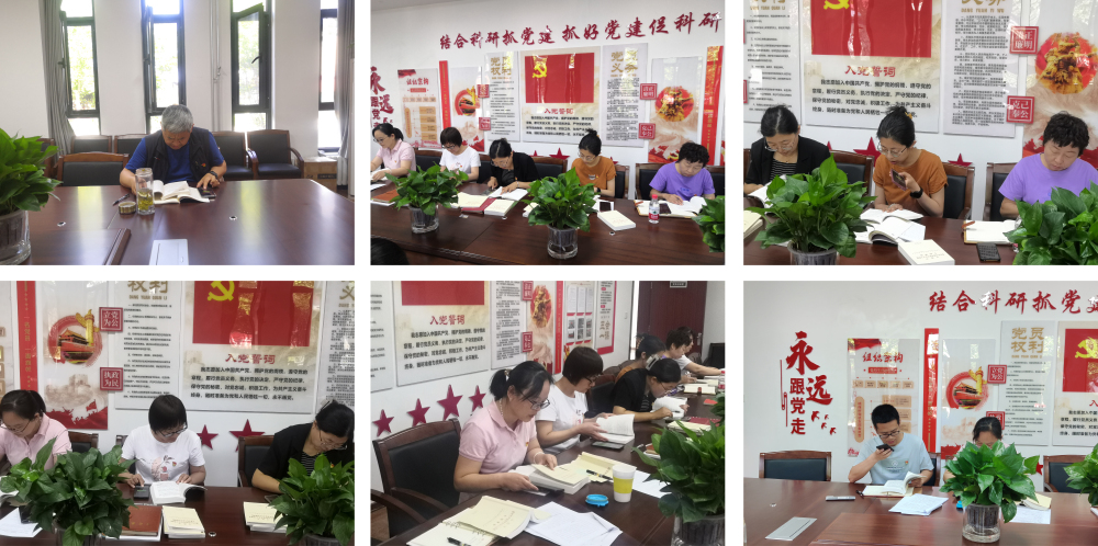 随后,开展了“学思想、标笔记、话心得、强党性”活动,采取原原本本学原著的形式,分别由三位支部委员和三名党员领学了《习近平新时代中国特色社会主义思想专题摘编》《论党的自我革命》《习近平新时代中国特色社会主义思想的世界观和方法论专题摘编》《习近平关于调查研究论述摘编》的部分章节。支部书记宋健做了总结发言,要求各位党员要提高政治站位,深刻认识和准确把握这次主题教育的重大意义,更加自觉增强“四个意识”、坚定“四个自信”,做到“两个维护”,同时要准确把握“学思想、强党性、重实践、建新功”的总要求,一体推进理论学习、调查研究、推动发展、检视整改,努力在促进党建与业务深度融合方面取得新成效。