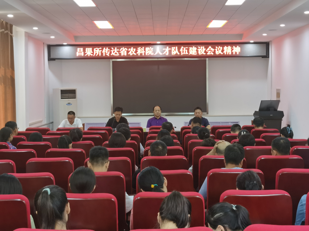 2023年7月24日,昌果所召开全体干部职工大会,传达省农科院人才队伍建设会议精神,会议由所长闫希光主持。党总支书记、副所长王广鹏传达了我院《关于进一步加强科技人才队伍建设的意见》《关于印发<博士后科研工作站管理办法>的通知》和《关于印发<关于省属“三家研究院”高端科研人才引进项目资金管理办法实施细则>的通知》及院党组书记、院长张铁龙在全院人才队伍建设工作会议上的讲话精神。闫希光所长作了专项工作总结,并分析了昌果所人才队伍现状及存在问题,围绕提升昌果所人才队伍建设水平,他强调,一是切实用好省、院各类人才引进及培养政策,进一步优化人才队伍建设及学科建设,提高该所科研工作水平;二是全体干部职工要做好人才政策的宣传员、介绍员、引导员;三是鼓励科研人员积极参加青年英才海外培养计划和青年科技人才国内进修计划,不断学习新技术、新思路、新方法;四是要做到勤奋、好学、务实,努力提升工作能力和业务水平,做有成果有建树的科技工作者。