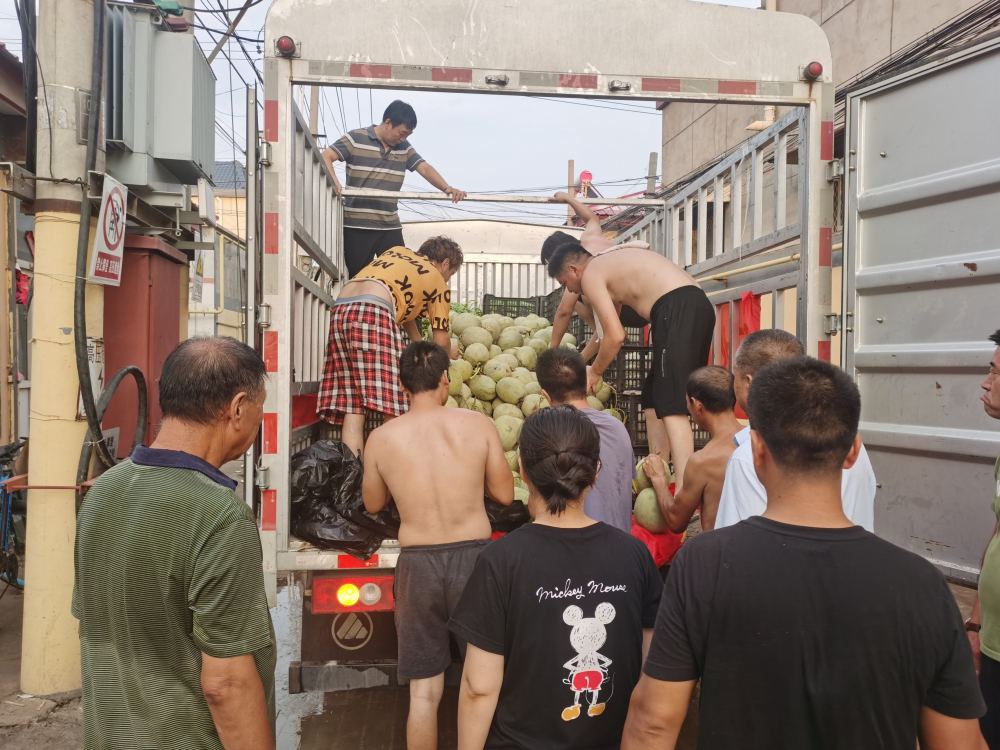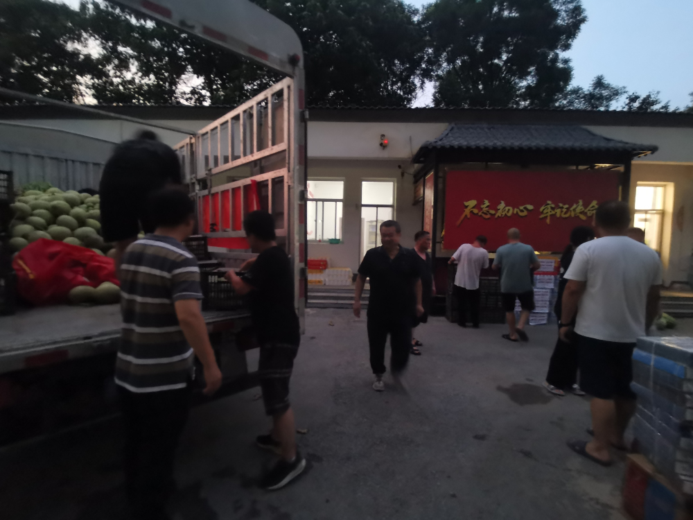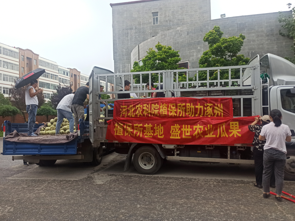 风雨无情人有情,自涿州市发布面向社会接受资金和物资捐赠的通知后,河北省农林科学院植物保护研究所作为驻保省直单位积极响应。8月4日当天,研究所携手任泽区瓜菜绿色高质高效生产技术示范基地、武邑武罗绿色果蔬生产技术示范基地、顺平环京津鲜桃绿色高质高效生产技术示范基地3个示范基地,迅速筹集各基地应季瓜果蔬菜约6000余斤,其中任泽区瓜菜基地盛世农业园区网纹甜瓜1000个,武邑武罗农业园区苹果、梨、黄瓜各1000斤、豆角200余斤,顺平望蕊鲜桃农业园区虽同为灾区,仍捐助雨前黄桃、黄油桃等100余箱。各基地项目负责人及所职工冒雨整合各地物资,由办公室副主任赵聚莹、基地负责人代表宋健、专家代表韩秀英带队,第一时间送往涿州灾区。