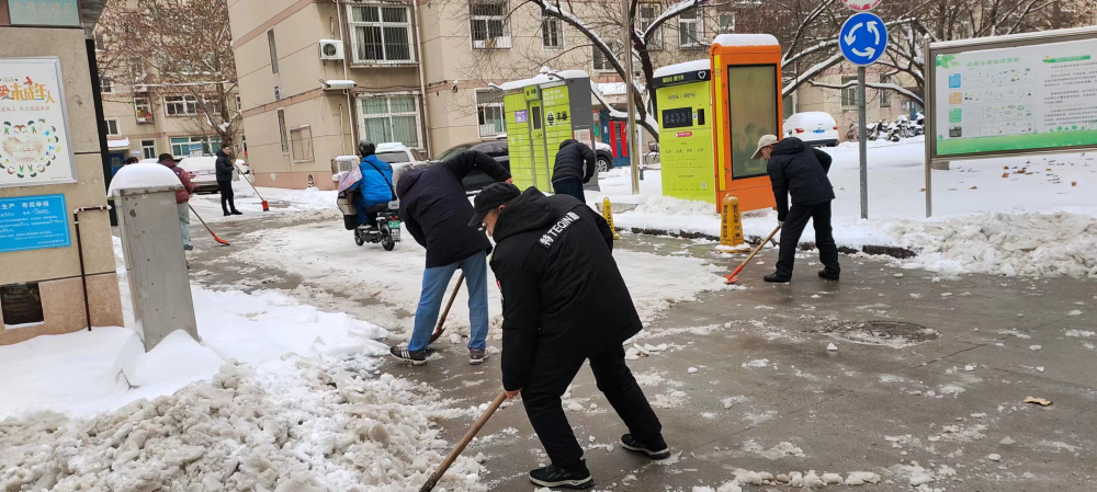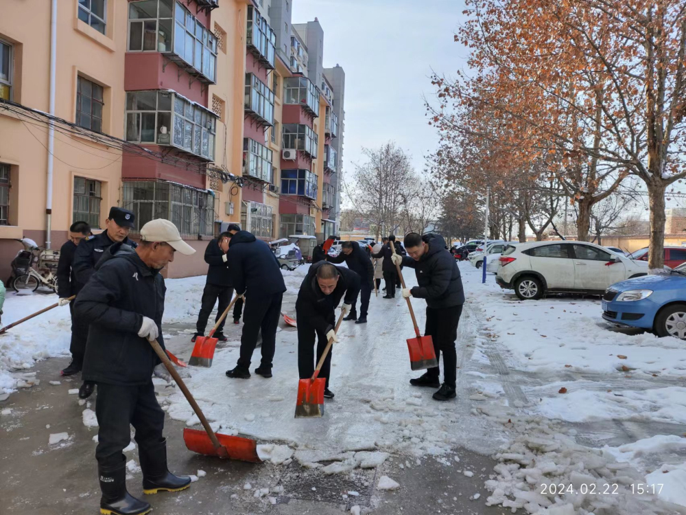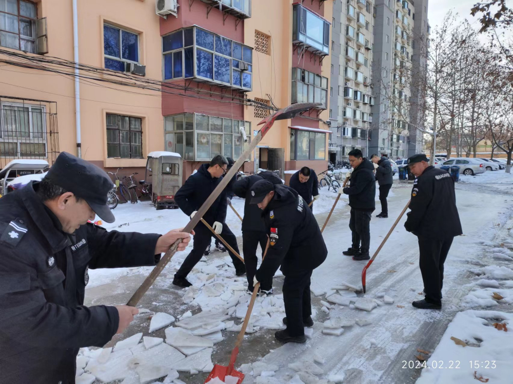 2024年2月21-22日,按照院关于做好雨雪天气防范应对工作要求,为切实维护好人民群众生命健康和安全,保障科研工作顺利开展,行政服务部党支部充分利用“双报到”平台,组织西院各有关单位党员和工作人员多次对西院办公区和家属区开展除雪铲冰活动。大家用手中的铁锹、扫帚、除雪板,不怕辛苦,不畏严寒,齐心协力、配合默契、干劲十足。通过此次除雪铲冰活动,充分发挥了基层党组织战斗堡垒作用和党员先锋模范作用,体现了党员和广大干部职工的为民服务宗旨。保障了职工和居民顺畅出行,积极为恢复正常生产生活秩序贡献了力量。